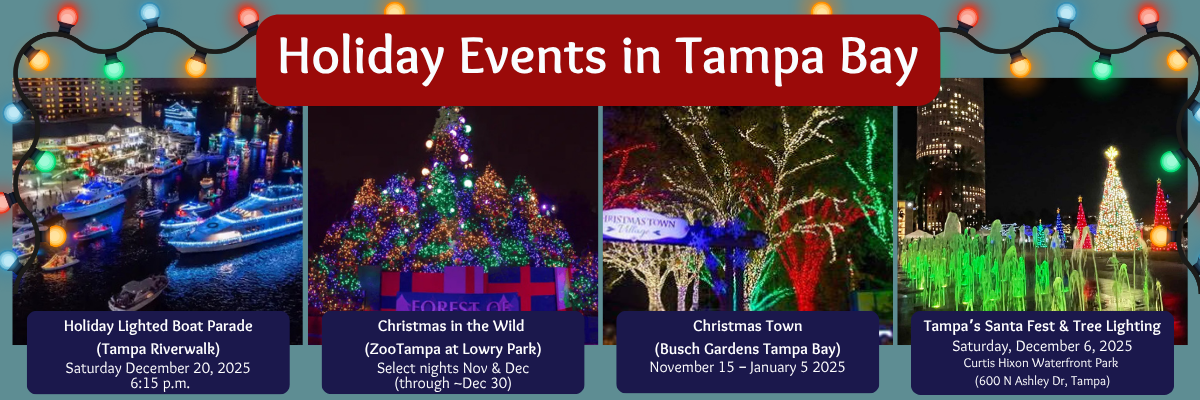 The most magical time of year is here, and Tampa Bay is sparkling with twinkling lights, festive parades, and family-friendly celebrations! Whether you’re looking to stroll beneath palm trees wrapped in lights, watch boats decked out for the holidays, or experience theme park magic with a Christmas twist, there’s something for everyone this season.